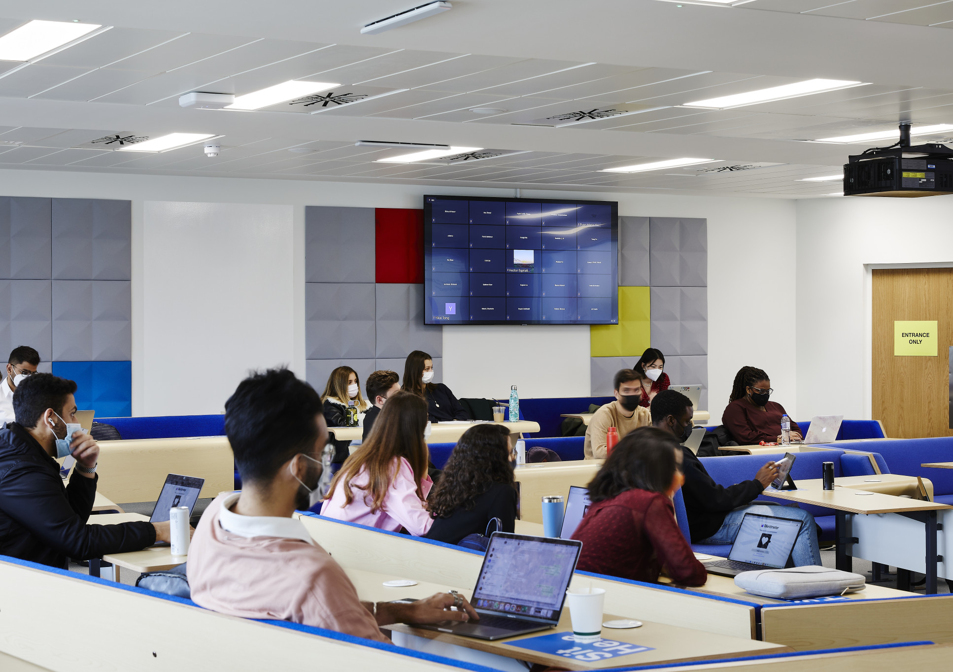 Business School students inside the new lecture theatres at Scale Space. Credit: Marcus Ginns