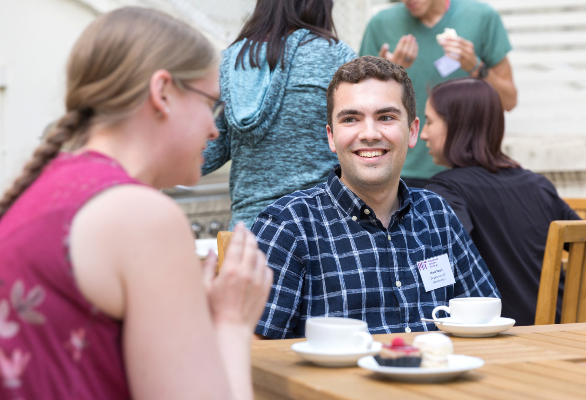 A student at an afternoon tea event