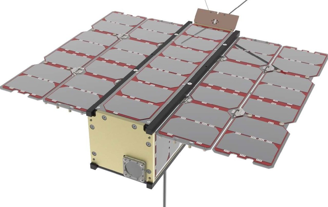 Testing of RadCube showing deployed solar panels and radio antennae. Credit: C3S LLC