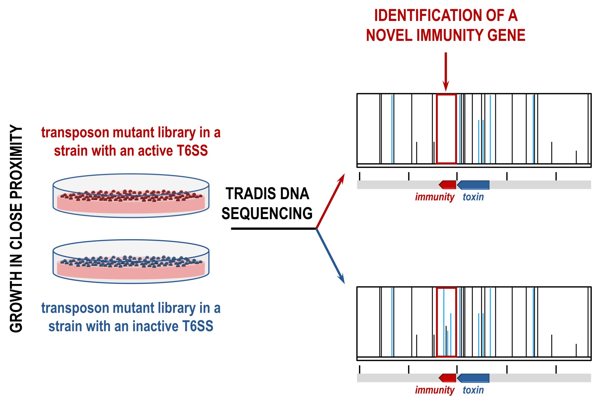 Every toxin gene sits next to a gene that encodes for an immunity against that toxin, which prevents cells from killing themselves or their neighbouring sister cells. The team realised that these immunity genes, and neighbouring toxins, could be identified using an approach called transposon directed insertion-site sequencing (TraDIS).