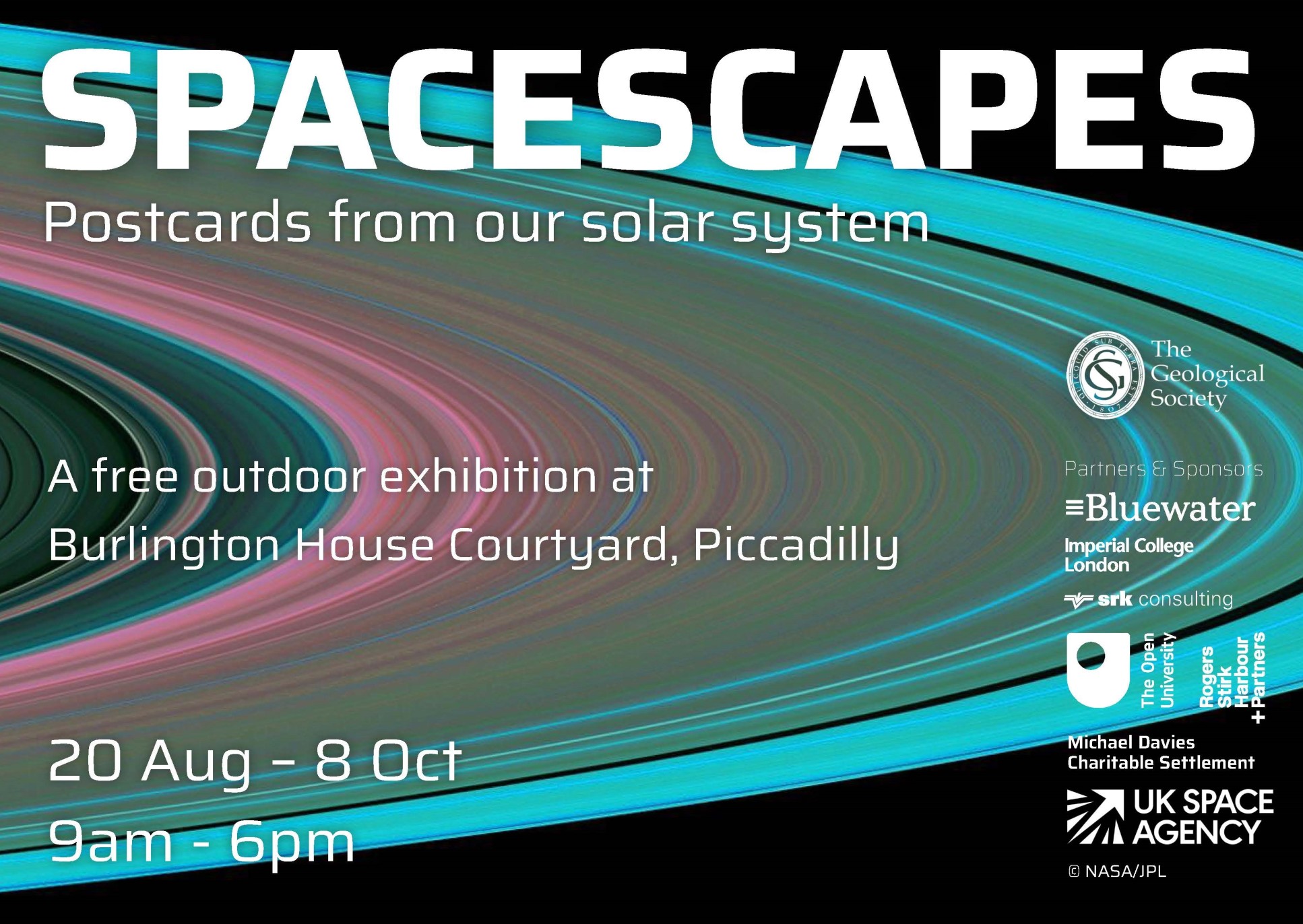 Entitled ‘Spacescapes: Postcards from our Solar System’, the exhibition is curated by the Geological Society of London in partnership with the UK Space Agency and an international team of planetary scientists, architects, engineers, artists and designers.