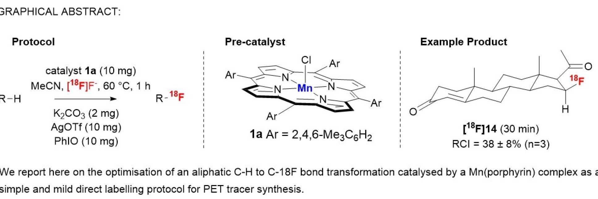 Methods: Herein, we report on the optimisation of an aliphatic C-H to C-18F bond transformation catalysed by a Mn(porphyrin) complex.