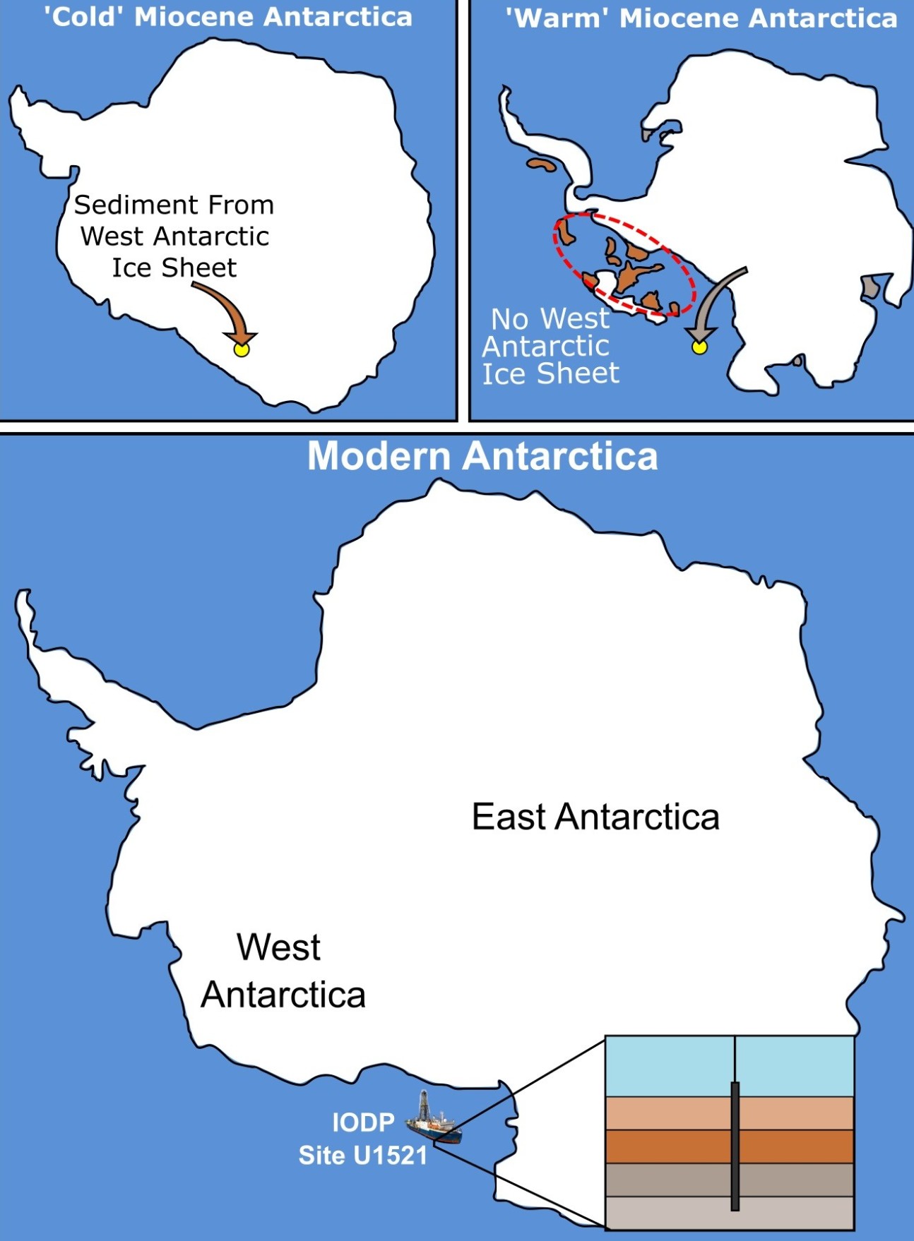 The WAIS is today considered very vulnerable to oceanic and atmospheric warming. This new study supports that idea, showing it expanded and contracted significantly during the Miocene.