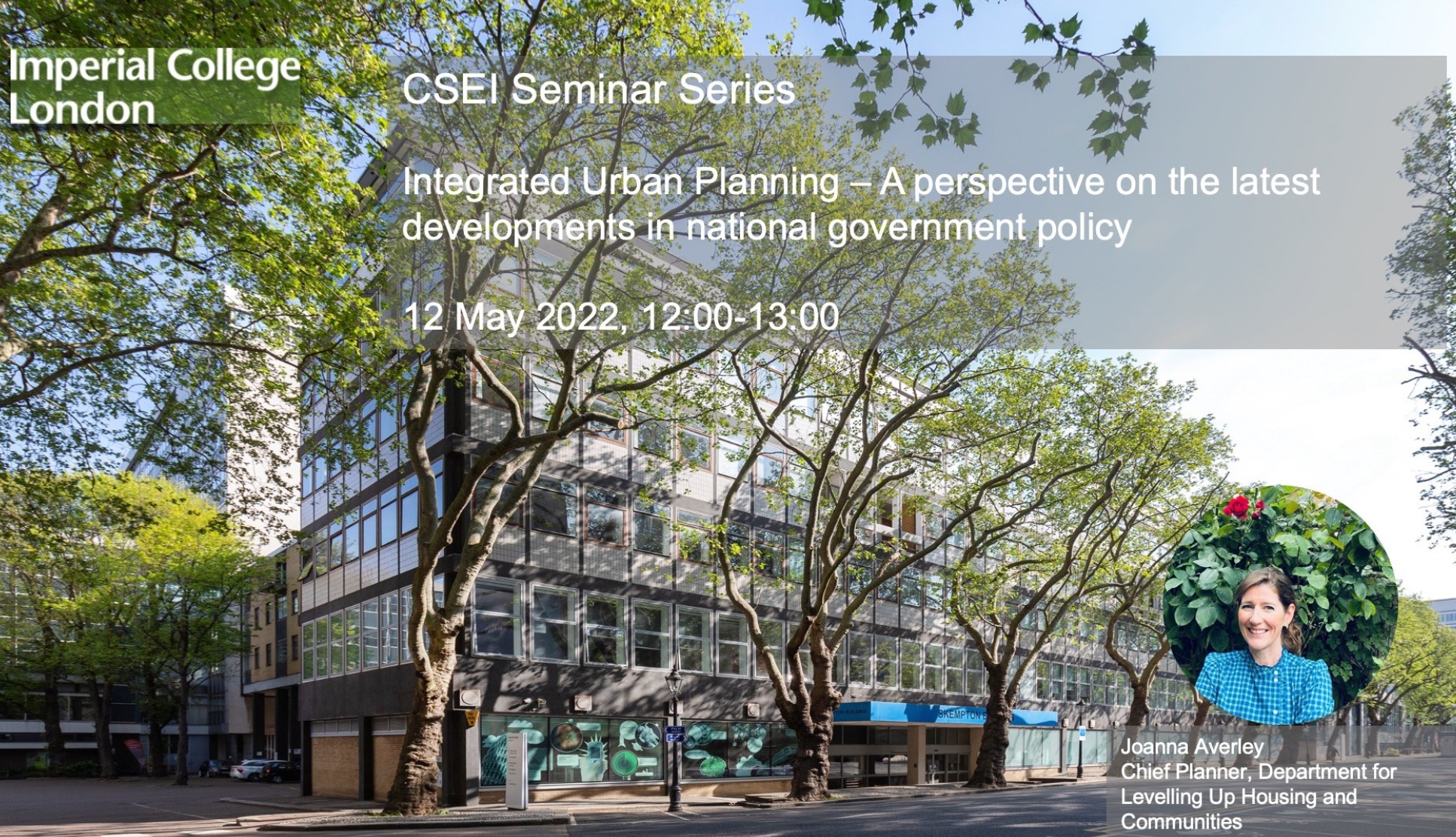 - Joanna Averley, Director of Planning at Department for Levelling Up, Housing and Communities, Integrated Urban Planning - A perspective on the latest developments in national government policy, 12 May 2022 12:00