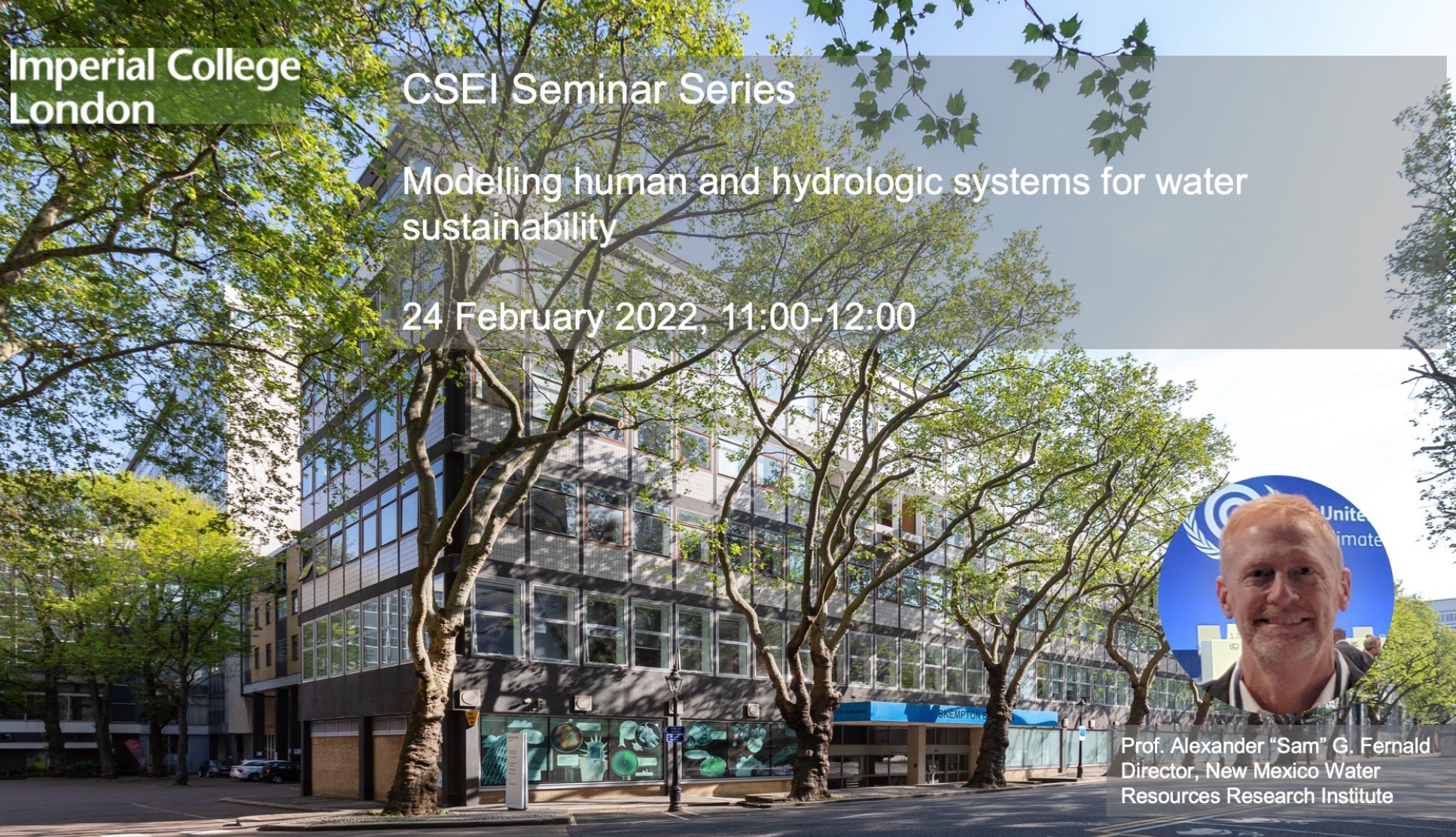 - Professor Alexander ‘Sam’ Fernald, Professor of Watershed Management and Director, Water Resources Research Institute, University of New Mexico, USA, Modeling human and hydrologic systems for water sustainability, 24 February 2022 11:00