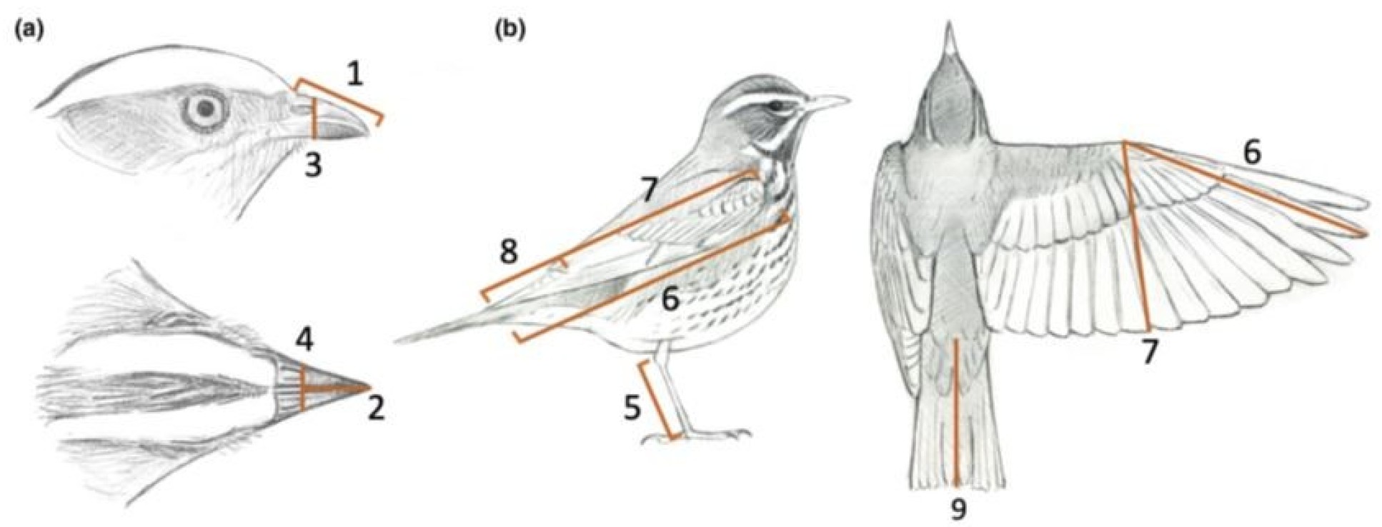 For each individual bird, we measured nine ‘morphological’ traits, related to physical aspects of their bodies: four beak measurements, three wing measurements, tail length, and tarsus length (lower leg). AVONET also includes body mass and hand-wing index, which is calculated from three wing measurements to give an estimate of flight efficiency, and so the ability of a species to disperse or move across the landscape.
