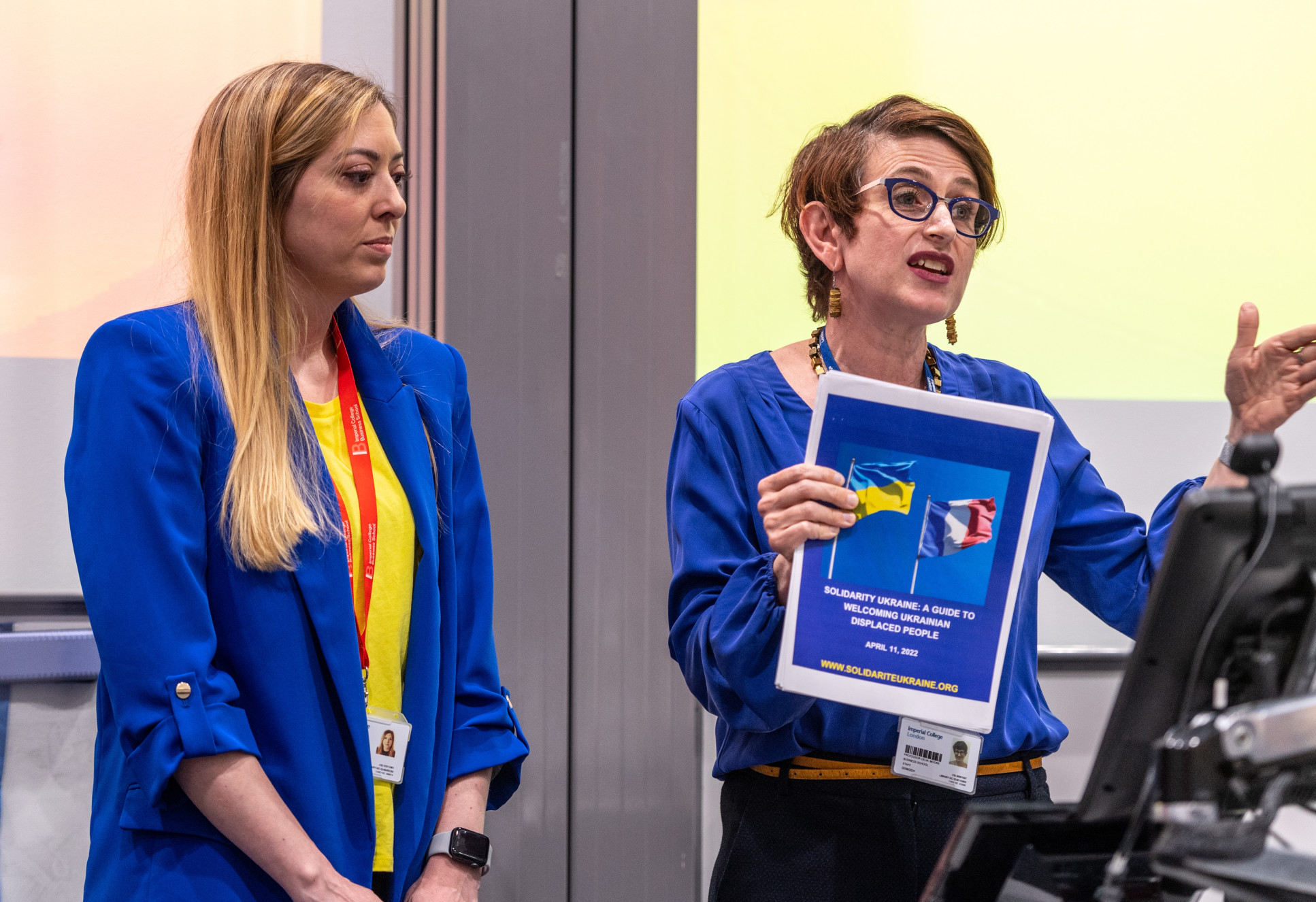 Dr Mary Meaney, a Business School Advisory Board member, shared insights of the work she’s been doing to resettle almost 400 displaced Ukrainian women and children to the community of Saint-Omer, where she lives, in Northern France. She shared moving stories of the Ukrainians she has welcomed into her community, such as Galina, a grandmother, who arrived with her daughter and eight-month-old granddaughter and 11 orphans. “A train ride from their village to the border would normally take 12 hours, but it took 54 hours because of the bombings,” said Dr Meaney.