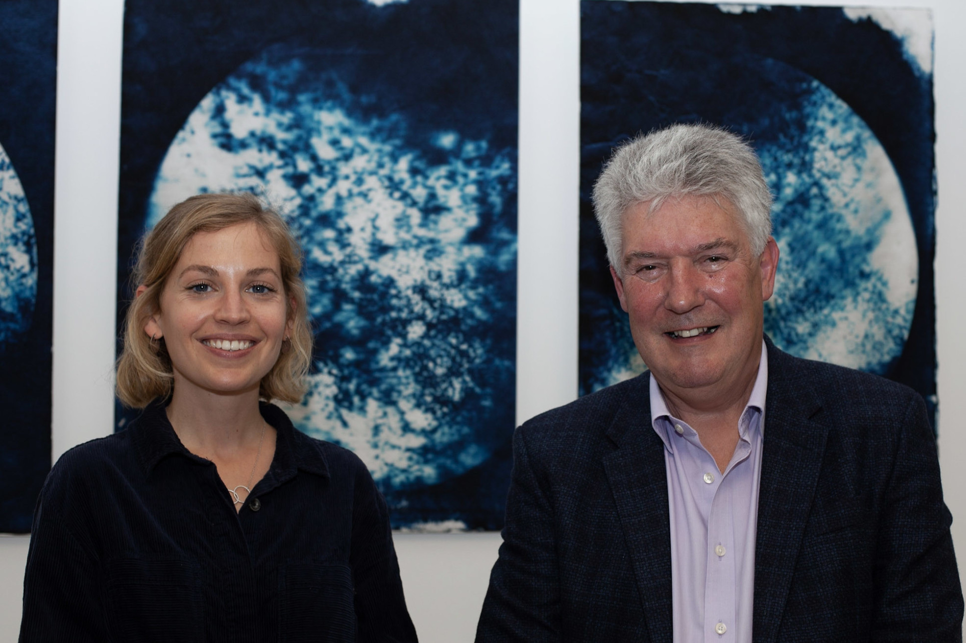 The resulting images are cyanotype prints created by a process that involves the use of natural sunlight to reveal the final image through coating paper with a photosensitive emulsion. The artwork has been printed on paper made from responsibly sourced 90% bamboo fibre and 10% cotton for the exhibition.