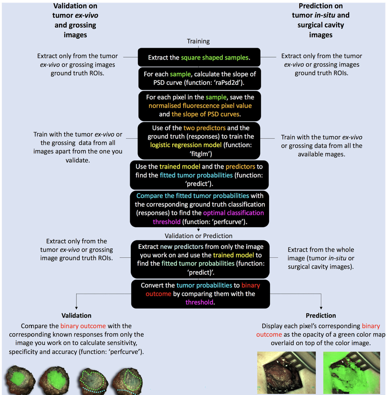 In this work, our research team also proposed a hybrid model that was trained anew with all the available ground truth data and applied to predict the tissue class (healthy/tumour) on the in-vivo images (tumour in-situ and surgical cavity) within the angiography cohort.