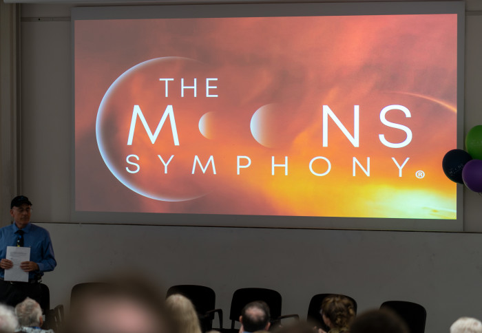 An animated crowd lined a lecture theatre at Imperial for the event in celebration of The Moons Symphony – a seven movement orchestral work inspired by seven of our solar system’s most awe-inspiring moons.