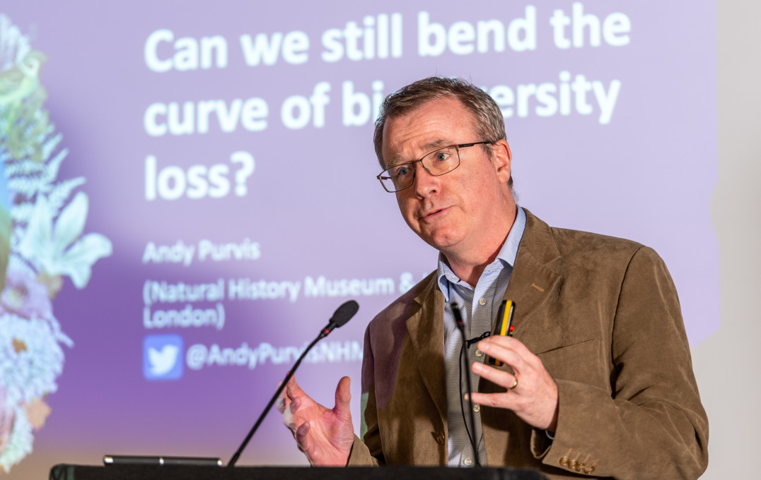 Professor Andy Purvis (Natural History Museum and Department of Life Sciences, Imperial) posed a critical question: can we still bend the curve of biodiversity loss? He highlighted ways in which we might go about measuring biodiversity and how a combination of models and monitoring can provide us with a "sat-nav" as we face complex and varied environmental issues that are intrinsically linked to many other economic, political and cultural issues. His main message: action cannot wait.