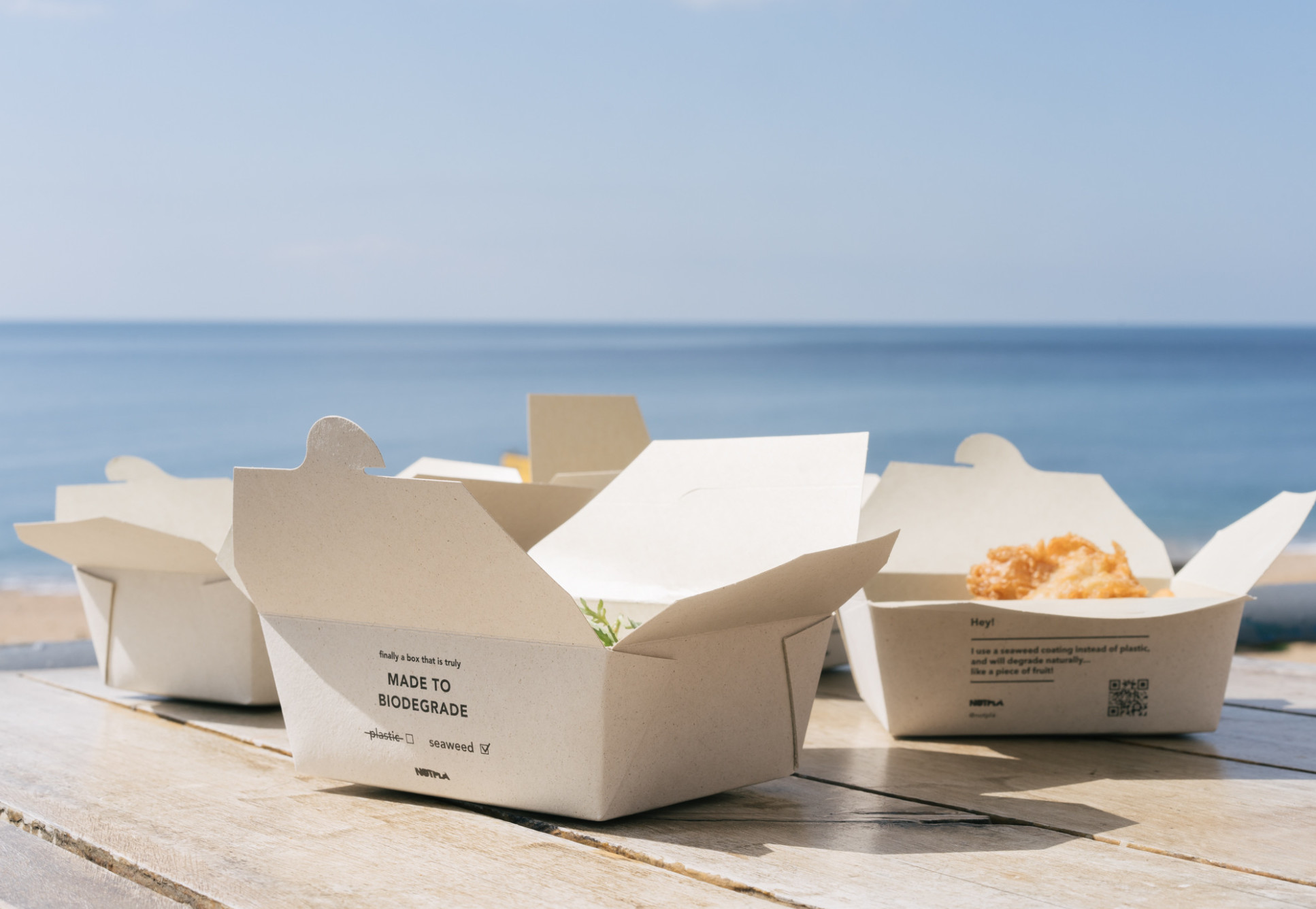 More recently, the team have made over one million food boxes for takeaway company Just Eat. The coating of this packaging is seaweed-based, greaseproof and waterproof, biodegrading in weeks.