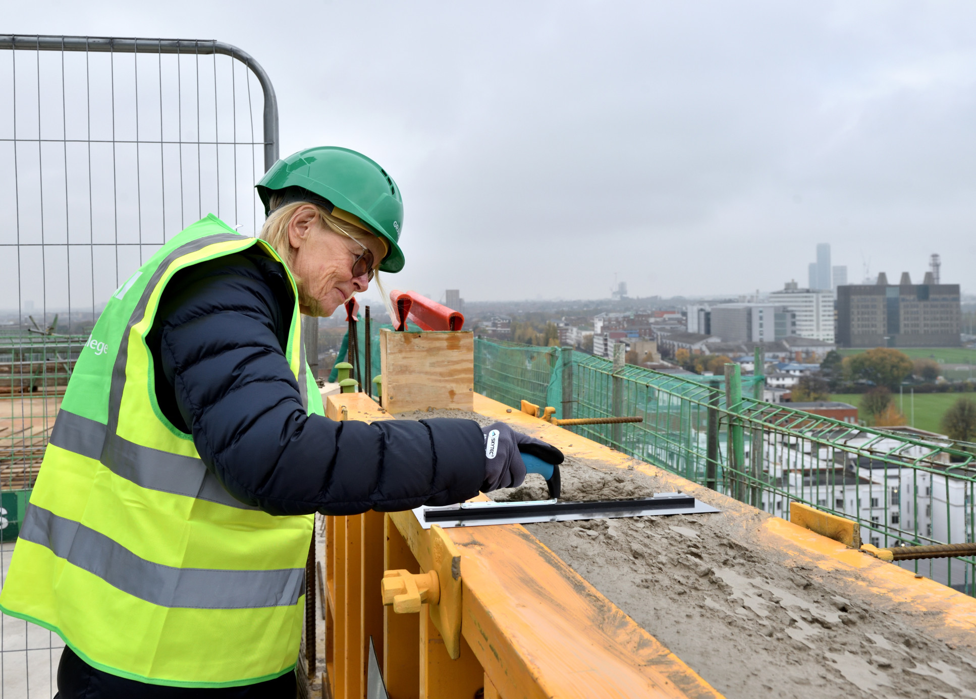 Imperial alumna and donor to the School of Public Health campaign Marit Mohn (MSc Chemical Engineering and Chemical Technology, 1973) applied the final mortaring on the roof at the topping out ceremony.