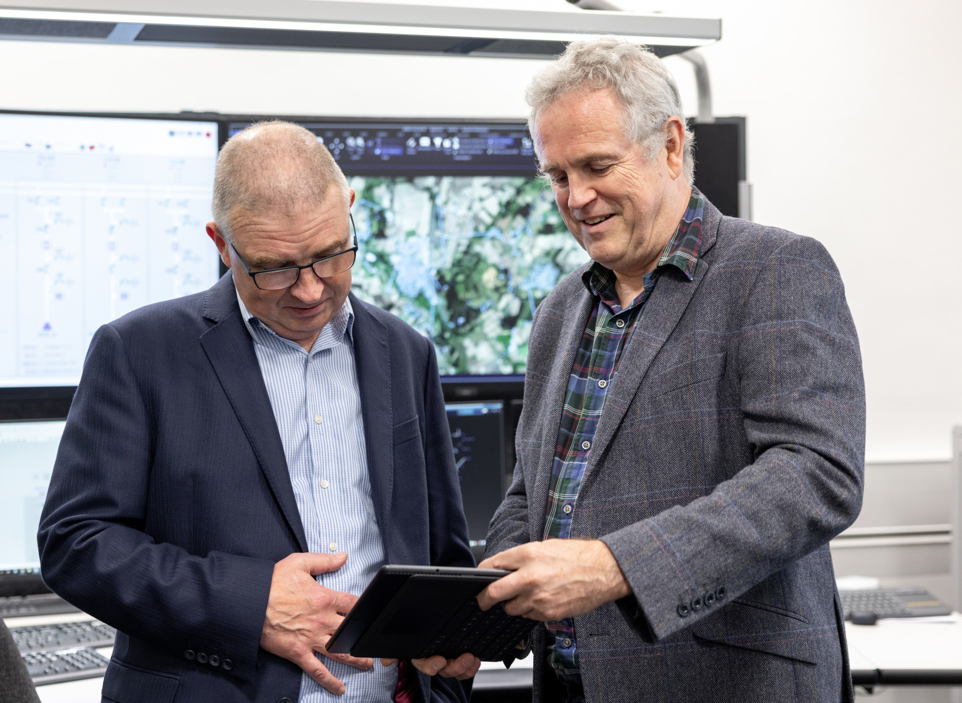 Prof O'Malley in the Digital Energy Demonstrator with Darren Jones, technology manager from Hitachi.