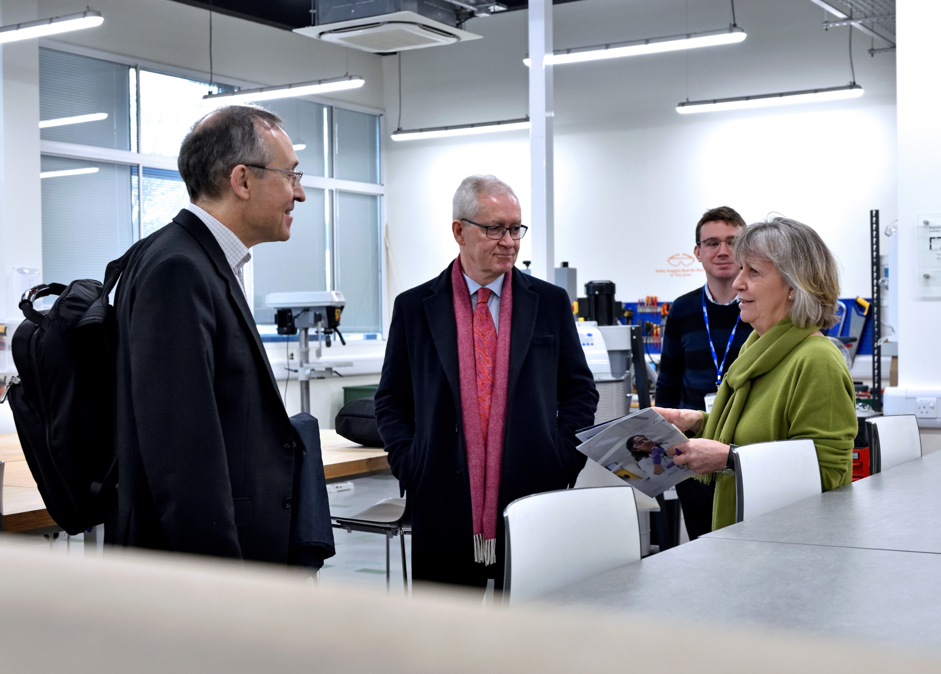 Hosted by President Professor Hugh Brady, the first part of the visit took part in The Invention Rooms, Imperial’s unique space at White City where the local community and the College come together to collaborate, innovate and make. Professor Maggie Dallman, Vice President (International) and Associate Provost (Academic Partnerships) showed Mr Slaughter the Dangoor Reach Out Makerspace which is dedicated to providing hands-on activities aimed at engaging school children creatively in science, technology, engineering, and mathematics (STEM) subjects.