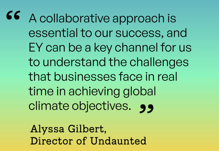 Alyssa Gilbert, Director of Innovation at Grantham Institute’s Undaunted, said: “Undaunted is delighted to be working closely with EY in our mission to tackle climate change with innovation – from innovative thinking through to creating and scaling up new ideas and inventions. A collaborative approach is essential to our success, and EY can be a key channel for us to understand the challenges that businesses face in real time in achieving global climate objectives.”