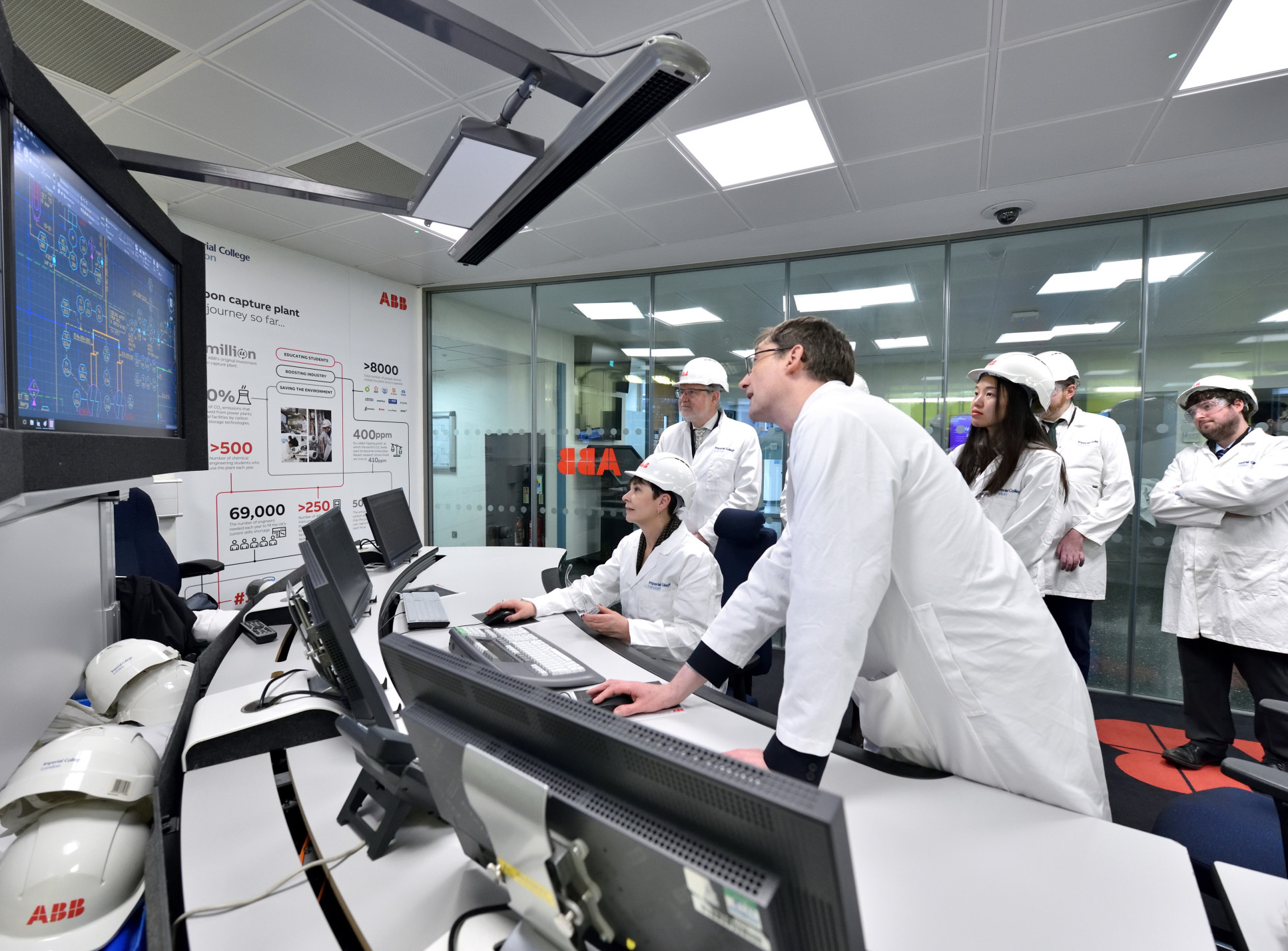 Hosted by Professor Tim Green, Academic Sustainability Leader, Professor Omar Matar, Head of the Department of Chemical Engineering and Dr Colin Hale, Senior Teaching Fellow, members saw first-hand how Imperial provides students with the knowledge and skills to lead a Net Zero future. The Committee visited the Carbon Capture Pilot Plant, the only facility in the world where learn to operate an industry-like plant stretching over four floors.Imperial staff and students showed Committee members how to control the plant during an emergency and demonstrated best practice in capturing and storing carbon dioxide before it can be released into the atmosphere.