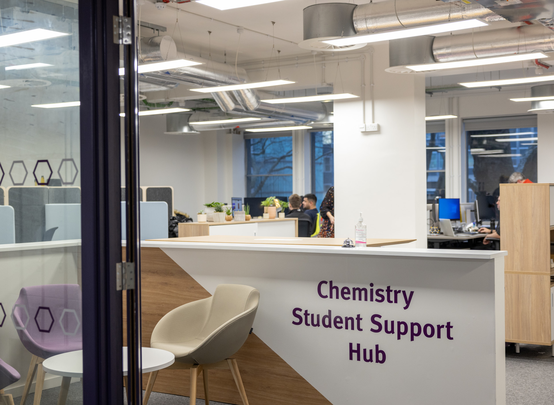 The Hub is now home to members of the Chemistry UG administration Services, Pastoral and Teaching teams which facilitates the one stop shop for all student and staff’s needs.