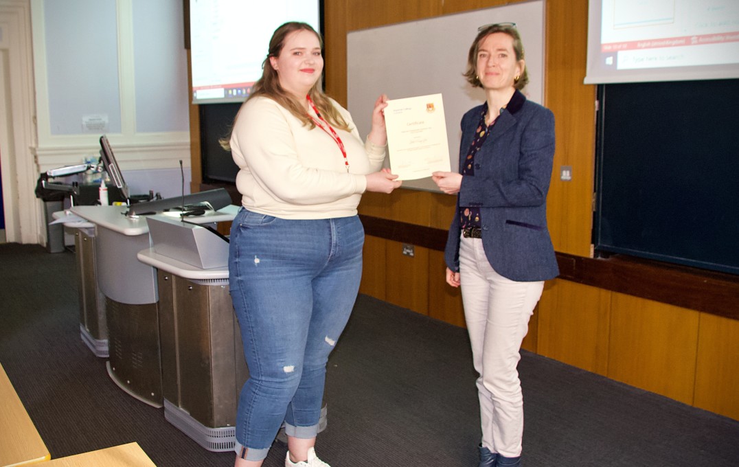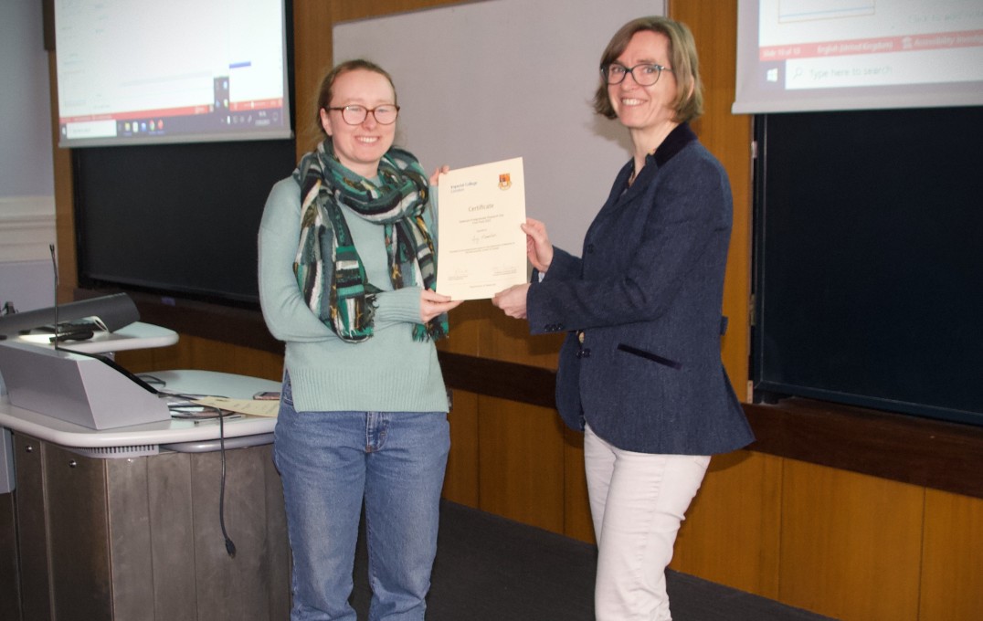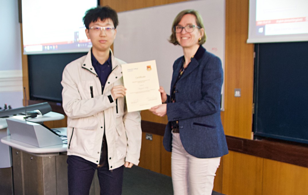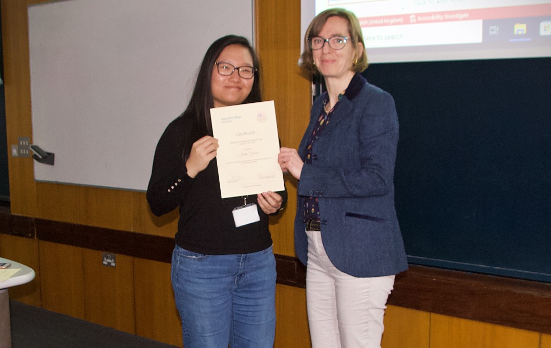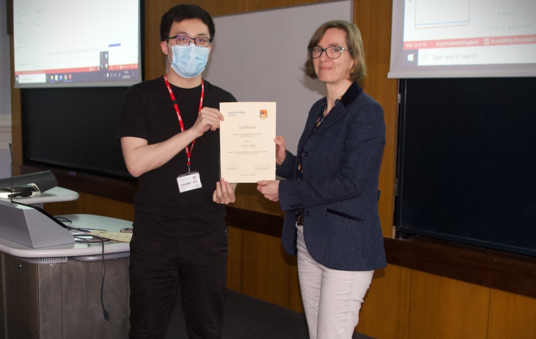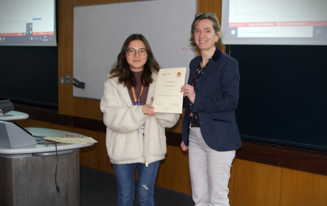 Professor Sandrine Heutz with Xingyu Li, second place awardee in the 'Best Poster Design' prize
