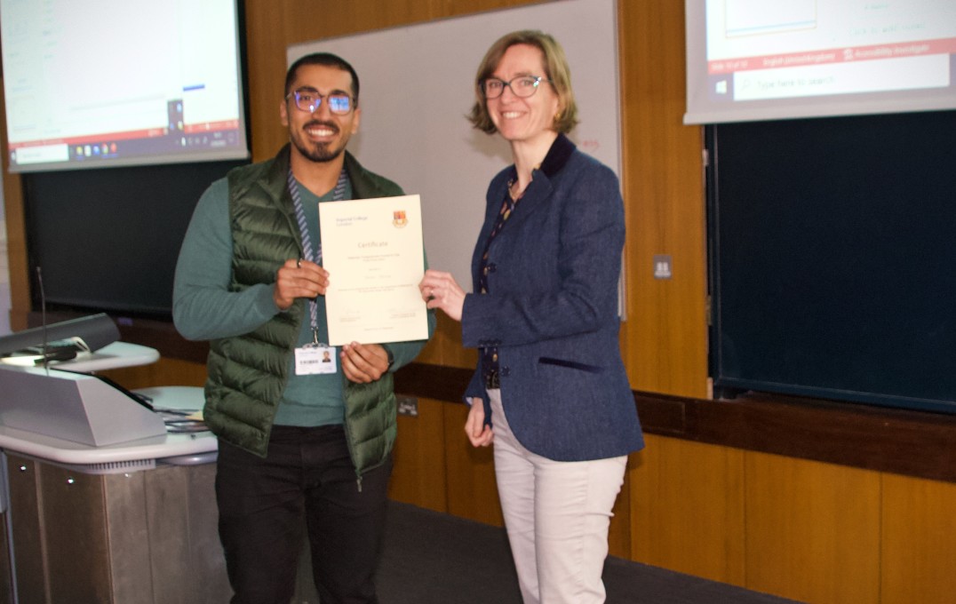 • Professor Sandrine Heutz with Xingyu Li, second place awardee in the 'Best Poster Design' prize
