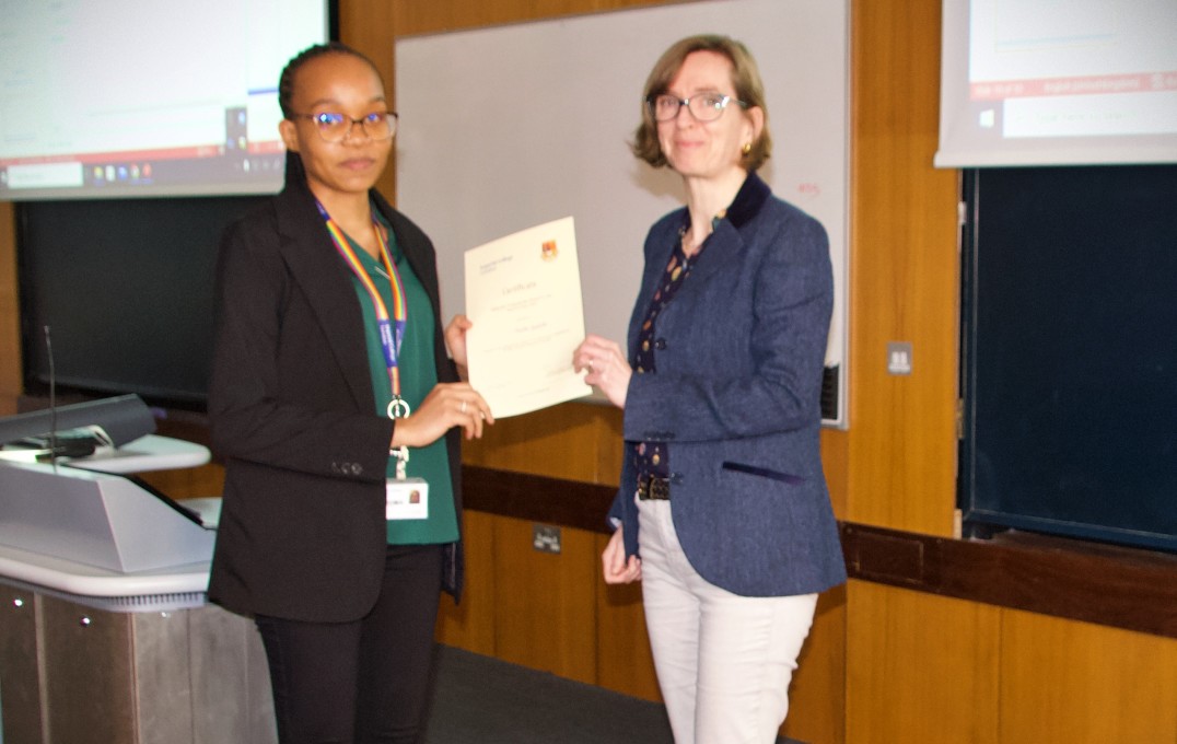 Professor Sandrine Heutz with Katlo Batsile, second place awardee of 'Best Industrial Relevance' poster prize