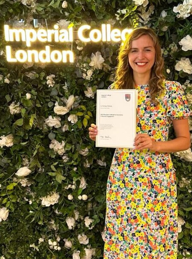 Dr Lindsay Dewa, Advanced Research Fellow in the School of Public Health and the Institute of Global Health Innovation (IGHI), was awarded the President’s Medal for Excellence in Societal Engagement for her innovative approach to engaging young people in her research and the revolutionary way she engaged the public with science.