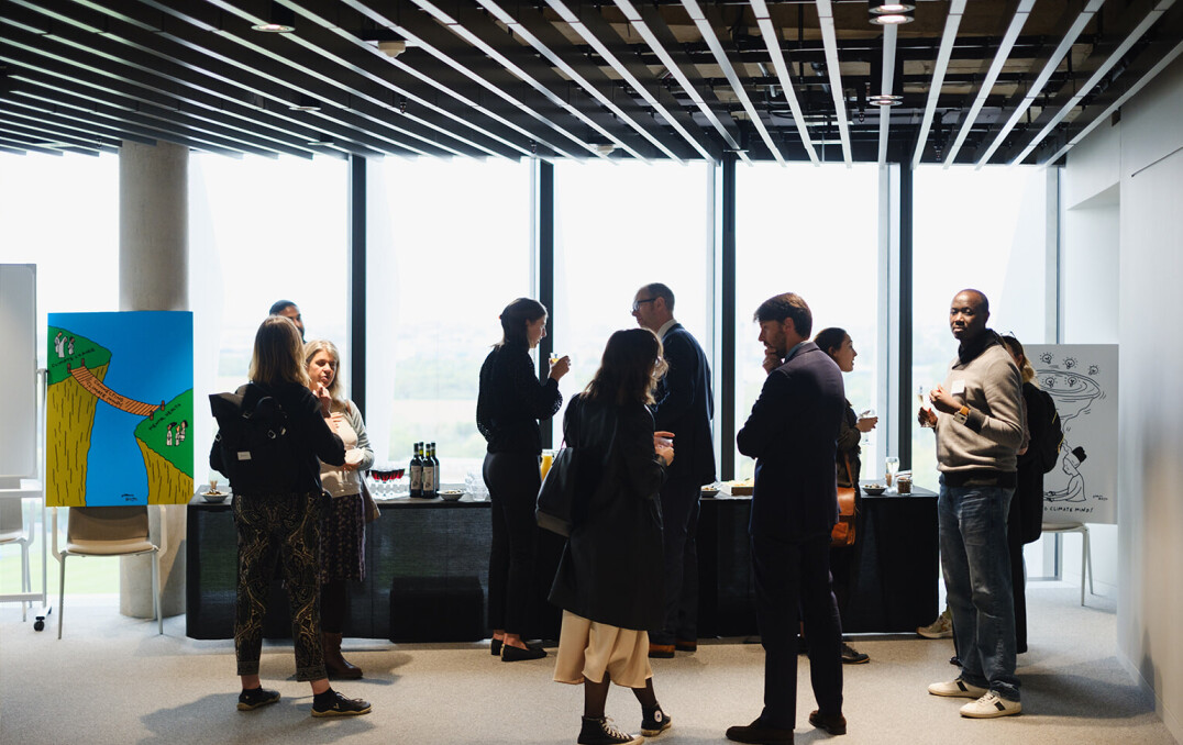 • People stand and chat at Climate Cares Centre launch