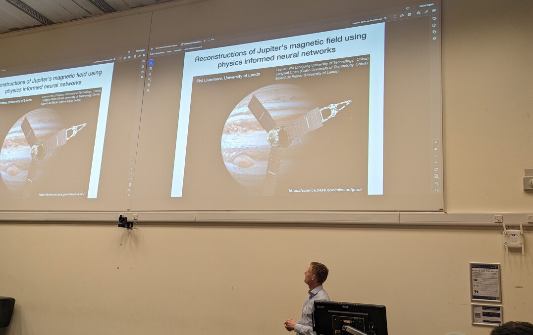 The flash talk competition was an opportunity for researchers to present their work in the form of a 3 minute talk. The flash talk competition was won by Phil Livermore from the University of Leeds for his talk on 'Reconstructions of Jupiter's magnetic field using physics-informed machine learning'.