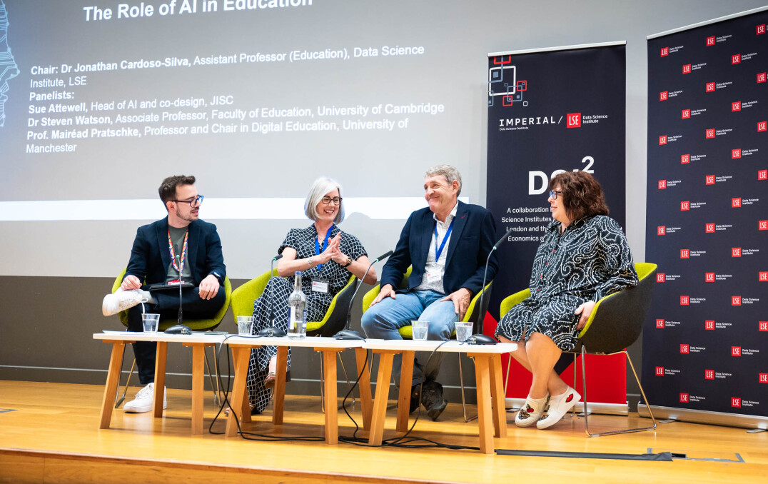 The final panel addressed the role of AI in education and its potential to completely transform the learning experience. Representatives from LSE’s DSI, JISC, and the Universities of Cambridge and Manchester explored how AI tools, including chatbots, could enhance critical thinking and deep understanding in education. Discussions included the need to ensure equitable access to AI, to address biases, and to redefine educational objectives so that creativity and effective communication are part of any AI-driven future.