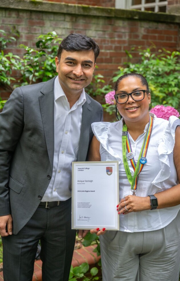Anique said that "receiving the Julia Higgins Award is an honour that resonates deeply with me, both personally and professionally. It underscores the importance of diversity in driving innovation and progress within our Imperial community. I am passionate about true representation and pushing boundaries in every aspect of my work. This award is a testament to our shared belief that no barrier is too high. To me, this is a thank you for embracing the power of inclusion and a continuation of our journey towards greater equity."