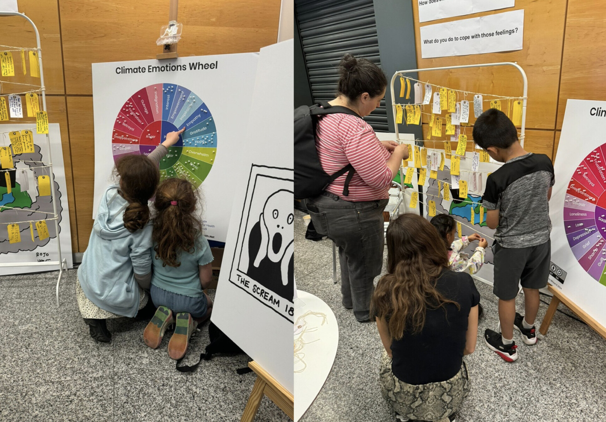 Visitors engaged with thought-provoking cartoons and participated in the ‘’Climate Emotions Wheel’’ activity, where they pinned their feelings about climate change.