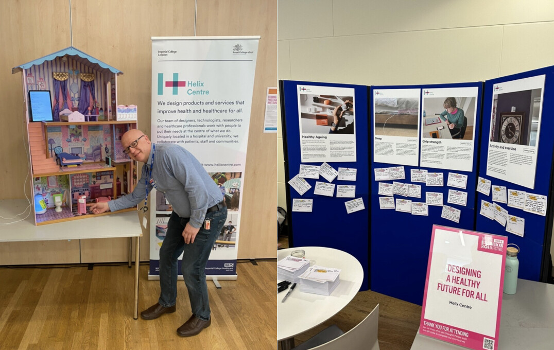 The Helix Centre led the "Designing a healthy future for all" stand, which focused on their Healthy Ageing work. As part of this project they use technology, such as passive sensors in the home, to understand people's behaviour and maintain health in older adults.