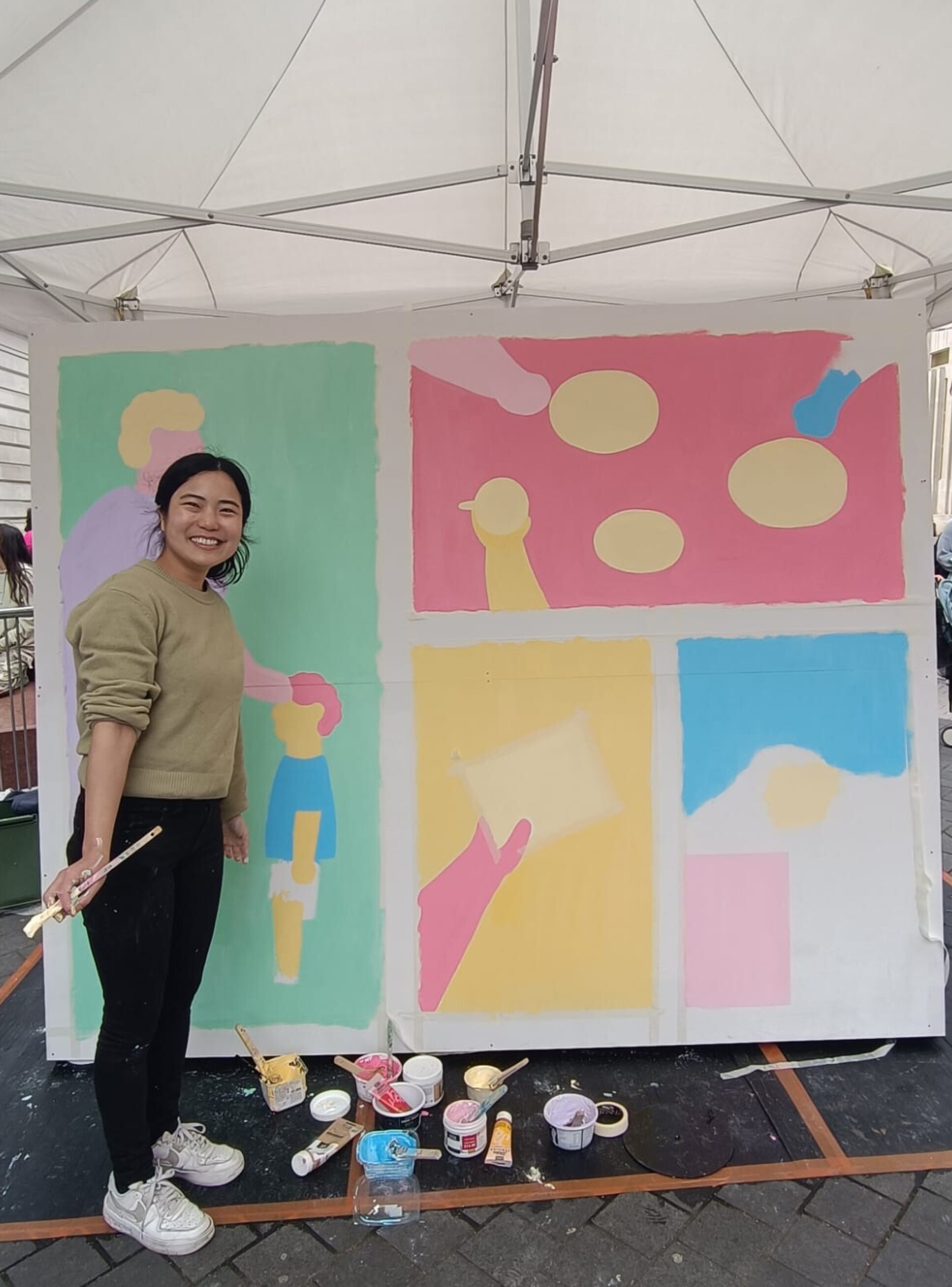 Inspired by conversations with Dr Tricia Tay, who is carrying out her PhD as part of the Healthy Ageing project, artist SHIO created a mural painting during the festival. The mural included depictions of smart devices and letters addressed to older people, encouraging visitors to connect more with their grandparents.