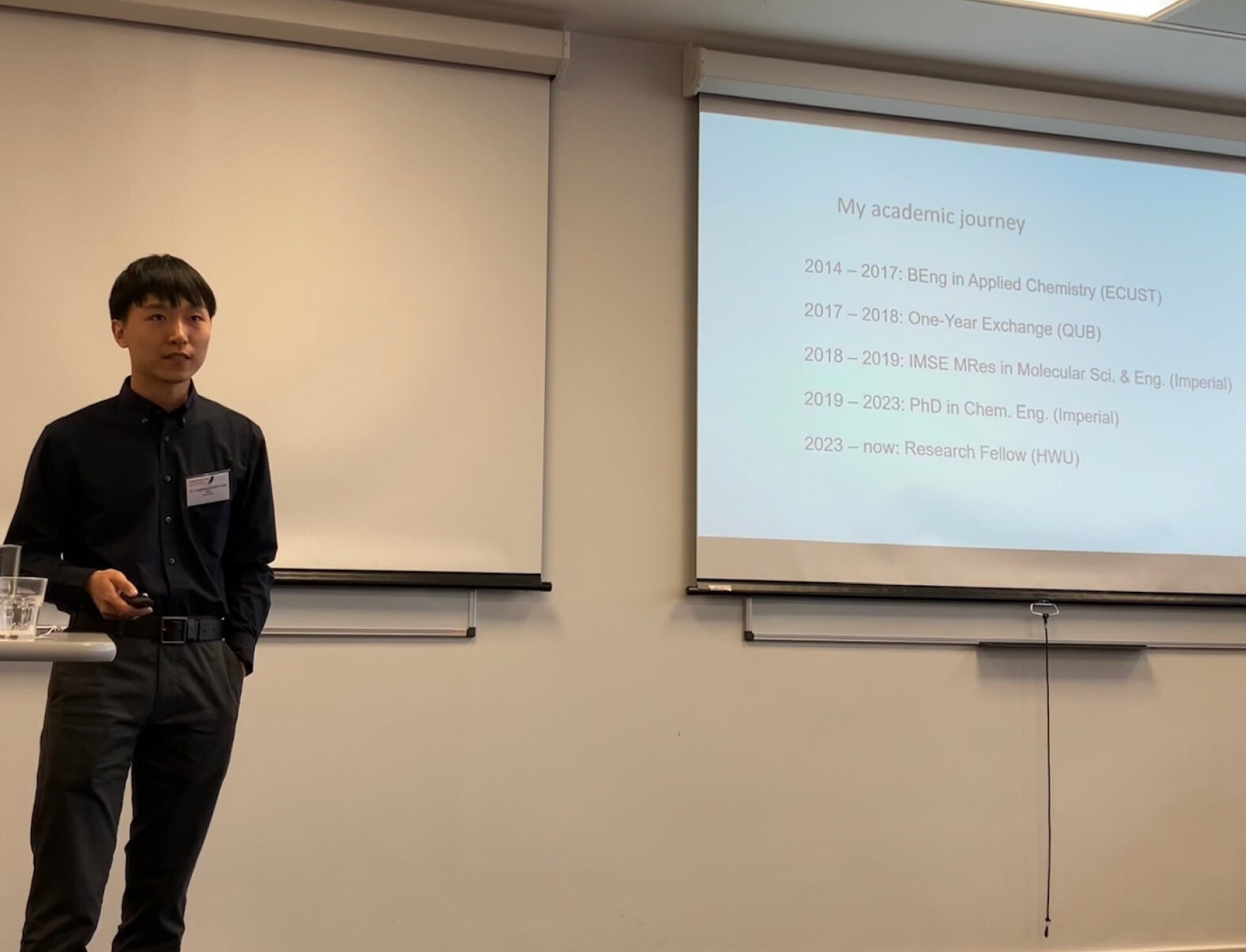 For the final talk of the day, we welcomed Lingfeng ('Griffin') Gui , IMSE MRes alumnus, now working as a postdoctoral research associate at Heriot Watt University. Griffin was a member of the IMSE MRes cohort in 2018-19, before doing a PhD at Imperial in the Department of Chemical Engineering, supervised by Professor Claire Adjiman and Professor Amparo Galindo, in partnership with Eli Lilly.