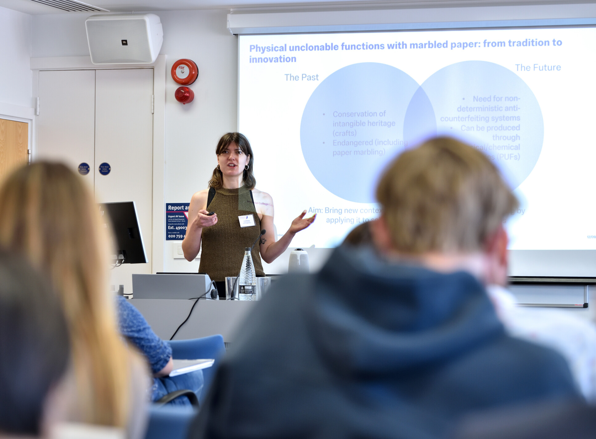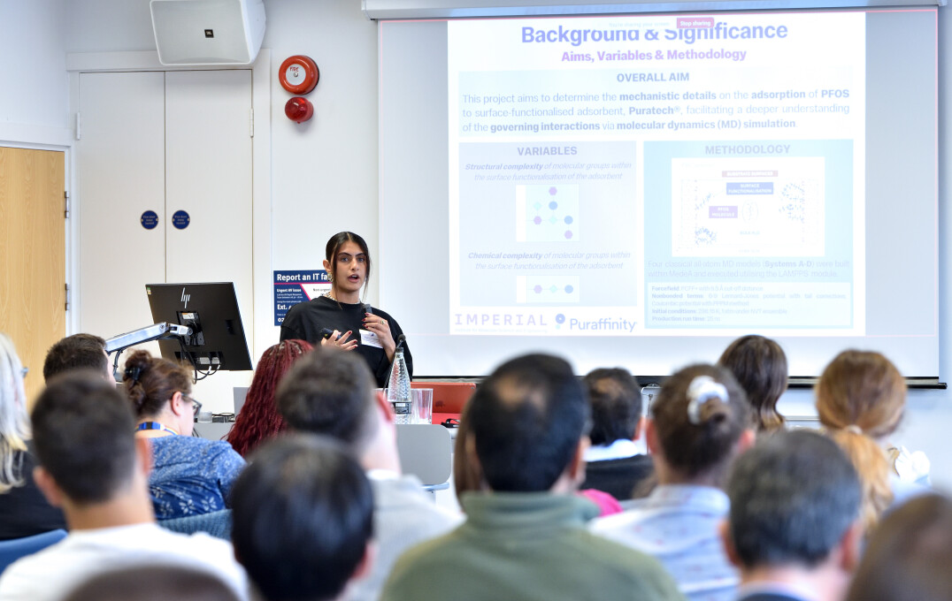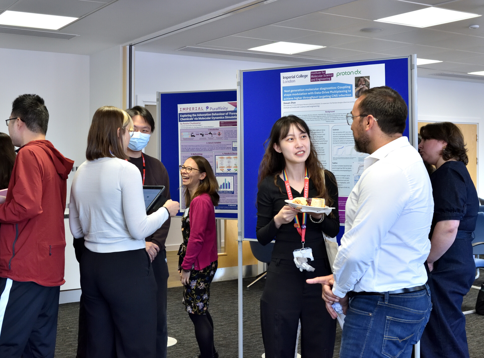 The day's highlight was IMSE's MRes students presenting their research projects through flash presentations with confidence and excitement. They then stood proudly next to their posters and discussed their results and findings with the attendees. All the projects were done in collaborations with industry (e.g. Proton DX, Elekta) or other end-users such as museums or even Chester Zoo! Following the transdisciplinary nature of IMSE and molecular engineering, the projects covered a wide range of subjects from circular economy, solar cells, modelling chemical design, molecular diagnostics, and clean water.