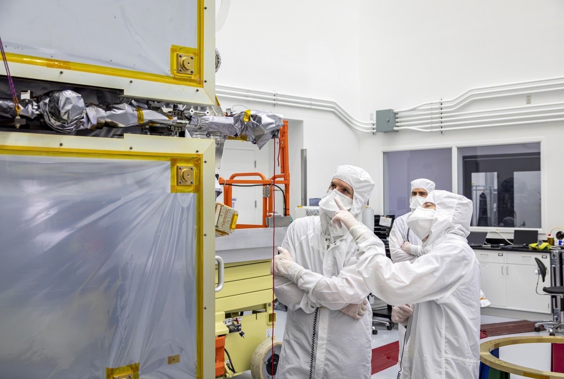 “It feels very real when you’re in a room with it. The sensors were mounted on a boom – a long arm that will keep them away from the spacecraft when it’s in space, but for now is folded onto the main craft. So the sensors are mounted and we’ve plugged them in, along with the electronics box, so everything is in its ‘final flight configuration’. We won’t unplug it again.”