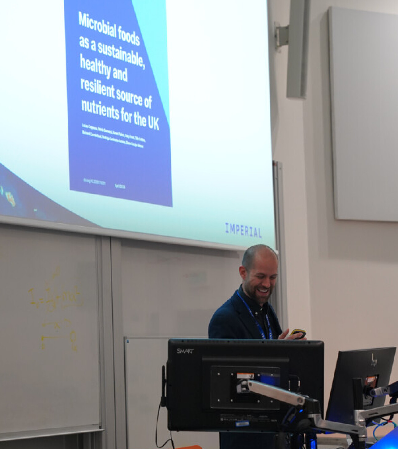 Attendees were able to learn about some of the research in this topic done at Imperial through a series of lighting talks from early career researchers. These were followed by talks from startups in the sector showcasing the variety in approaches and products in the microbial foods industry.