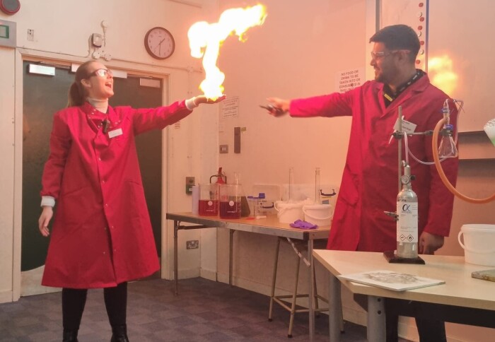 Dr Ravi Singh, Dr Rebecca Jones and Dr Benji Fenech-Salerno then conducted a practical demonstration. This was designed to provide insight on the practical side of the degrees we offer and to show offer holders how they will apply theoretical taught chemistry to practice.