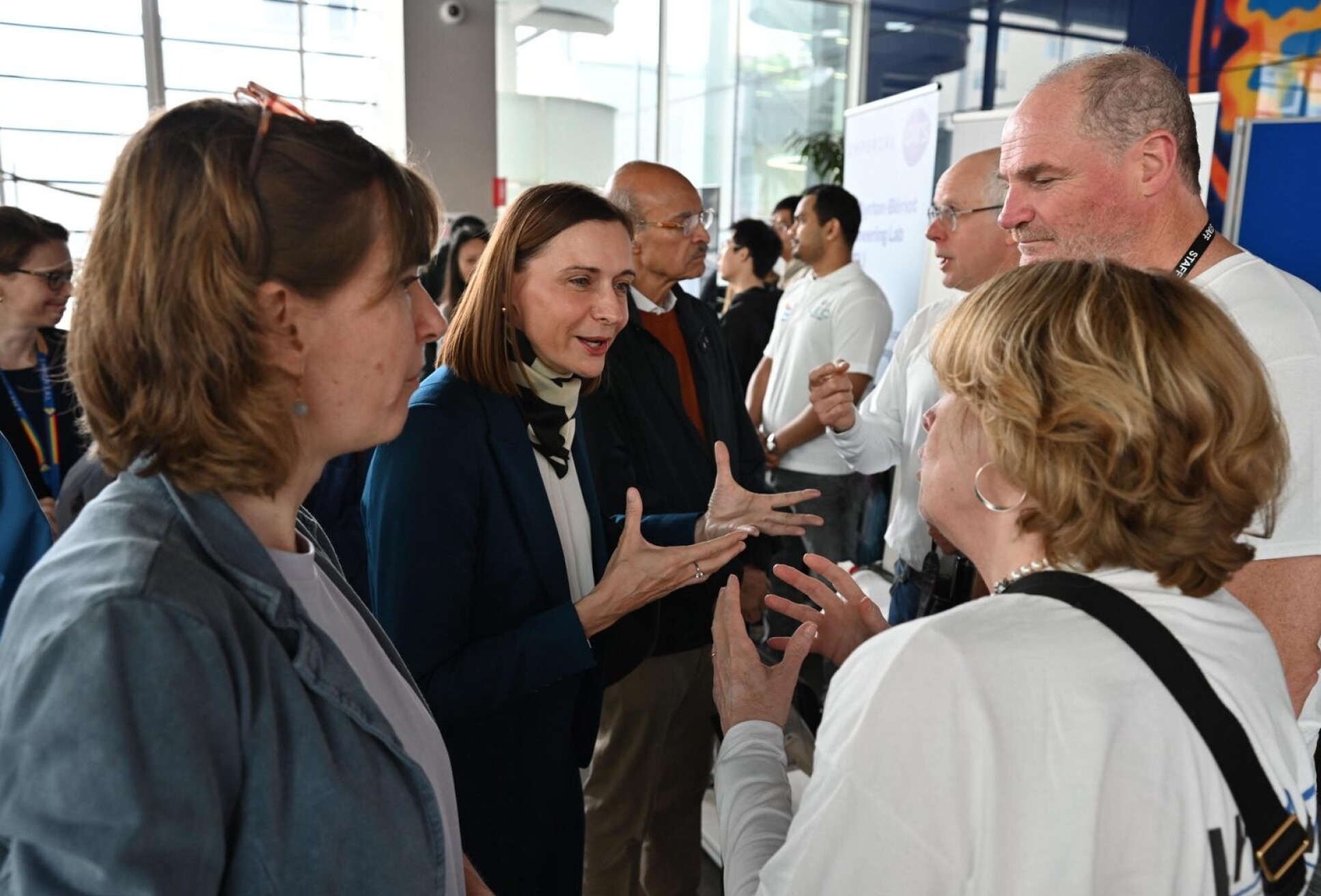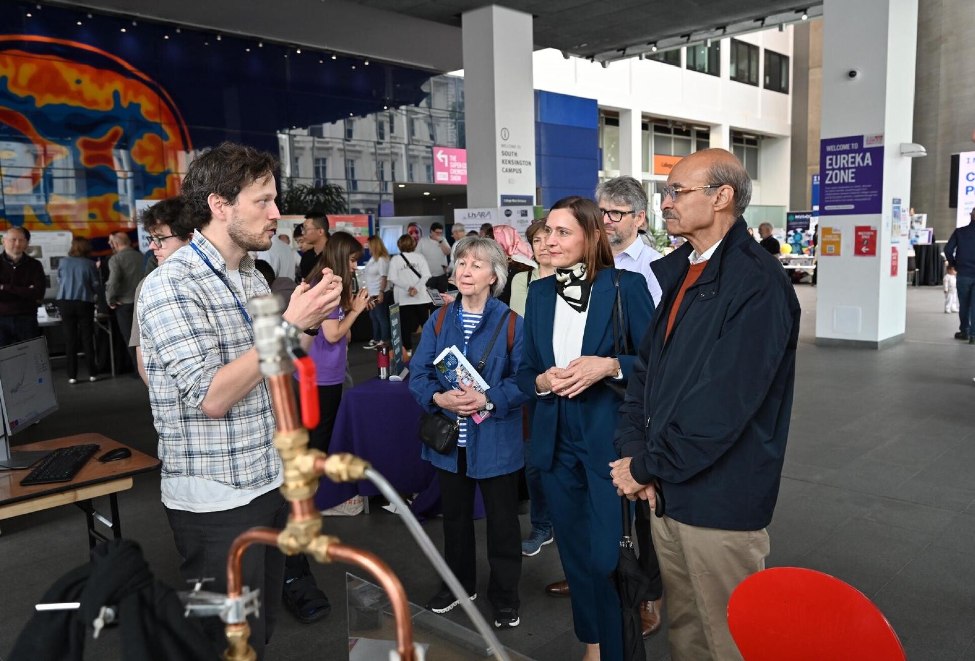 During the 2025 Great Exhibition Road Festival, Imperial’s Main Entrance played host to an interactive zone highlighting a number of Imperial’s research collaboration across Europe. Hosted by Associate Provost (Societal Engagement) Professor Maggie Dallman and joined by Chair of Council Vindi Banga, Ms Poppelbaum met with ten Imperial research teams working with colleagues across the continent addressing health challenges, developing new sustainable materials and enhancing our understanding of the earth’s atmosphere and beyond.