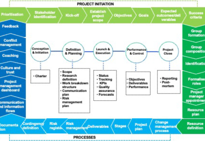 Anecdotal good practice in group projects is widely available. In the academic context group project work offers potential for real world experience development along with enabling activities to be undertaken within limited resources. Nevertheless, concerns exist regarding aspects such as fairness, burden and unpopularity. This paper provides a review of commonly cited best practice for group projects, supplemented by a cross-university review undertaken by students of group projects at Imperial in combination with guidance from three other universities. Arising highlighted good practice principles include prioritisation, holding a kick-off meeting, establishment of project scope and objectives, attention to group composition, resource planning, change management, project planning, risk management, documentation, communication, cooperation, culture and psychological safety, dependability, sense of purpose, conflict management and feedback. From the extensive body of guidance available it is evident that we could learn more from industrial approaches to project management. However, it is also acknowledged that maximising outcomes may not maximise learning, especially for academically weaker and stronger students. A recommendation arising from practice in some modules and industry includes ongoing attention to project management training and role development during a project so that practitioners can continue to learn and upskill within a project and specific role, rather than relying on training sessions before a project.