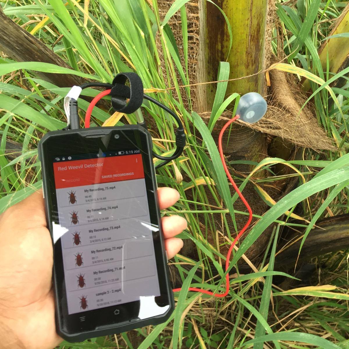 Permia Sensing’s technology has its roots in a project for the Coconut Research Institute of Sri Lanka, carried out around 2005 when Professor Nanayakkara was a senior lecturer at the University of Moratuwa. He and his colleagues developed a sensor that could pick up the sound of red palm weevil larvae eating and growing inside the trunks of coconut palms.