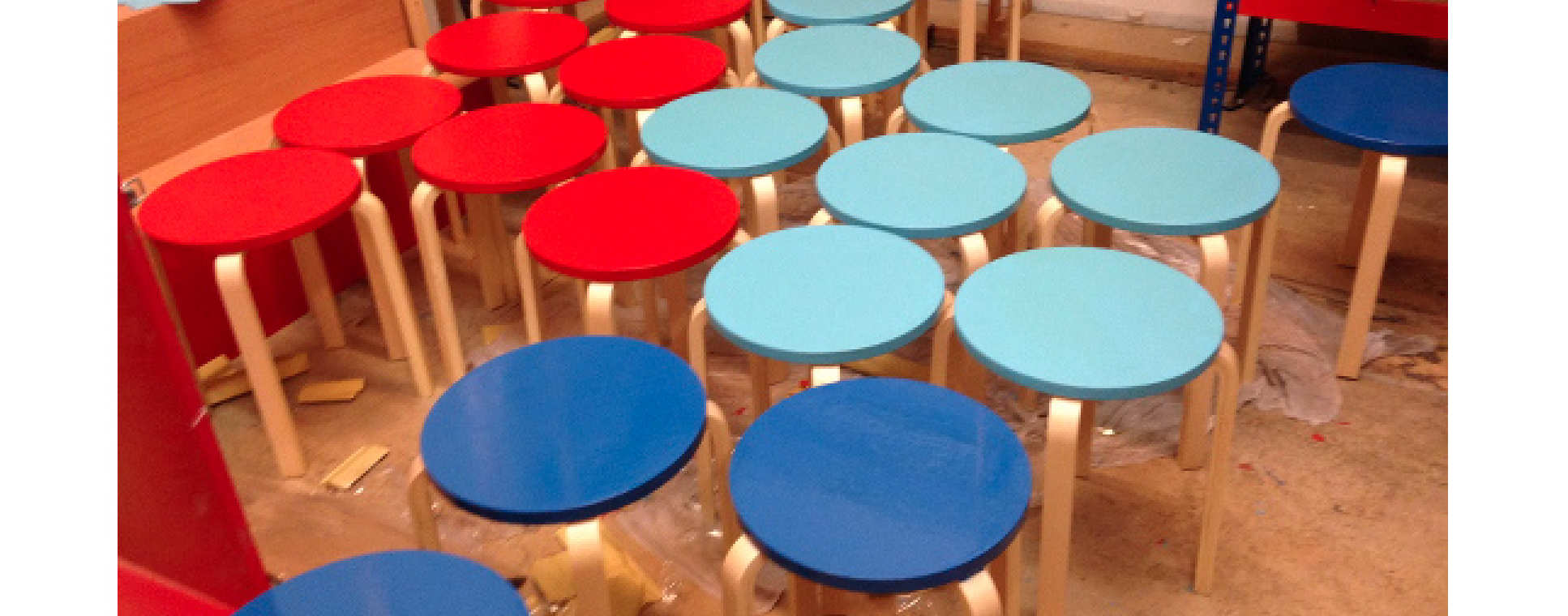 Freshly painted chairs, just waiting for an audience to sit on them.