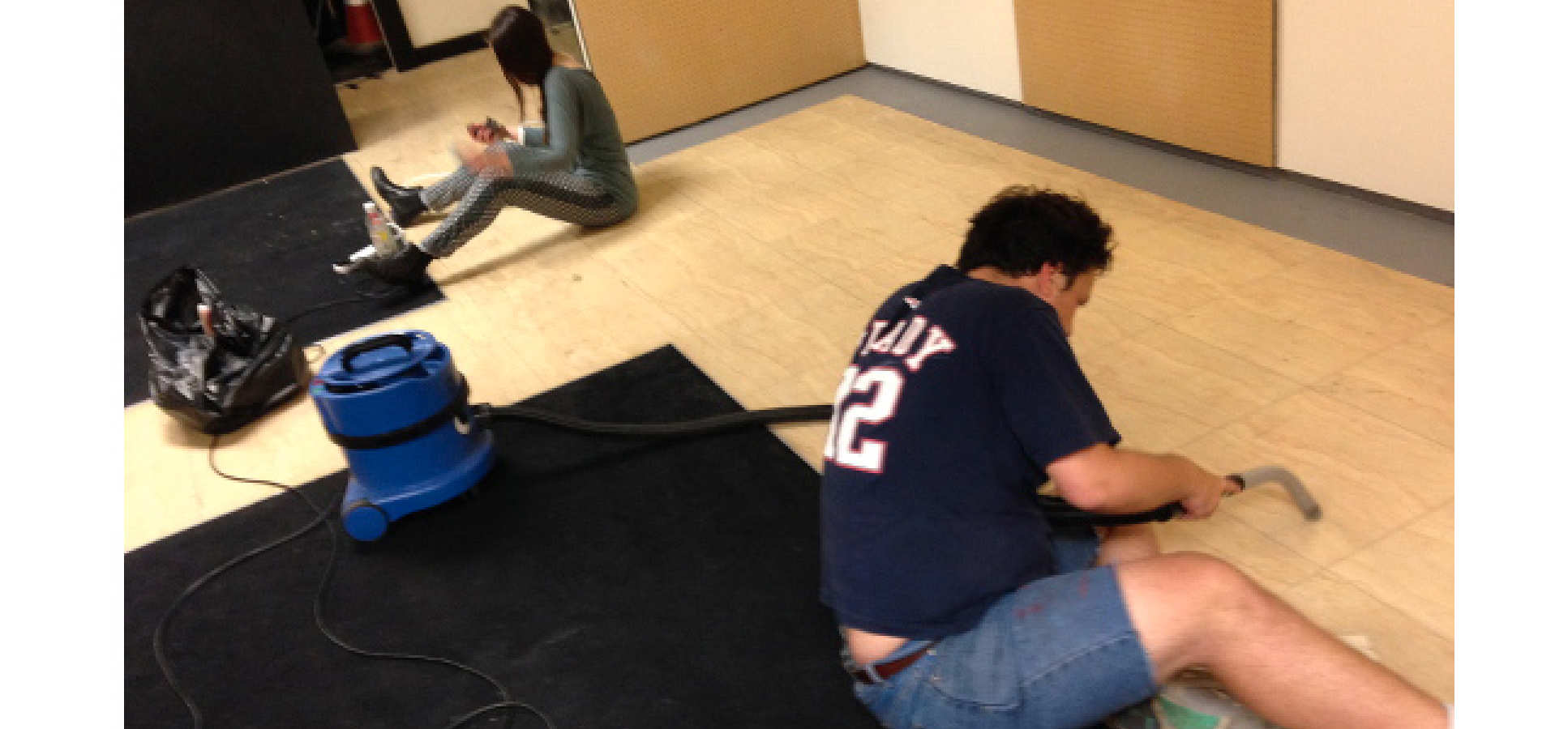Shop Assistants Ros and Will doing some very impressive last minute floor cleaning.