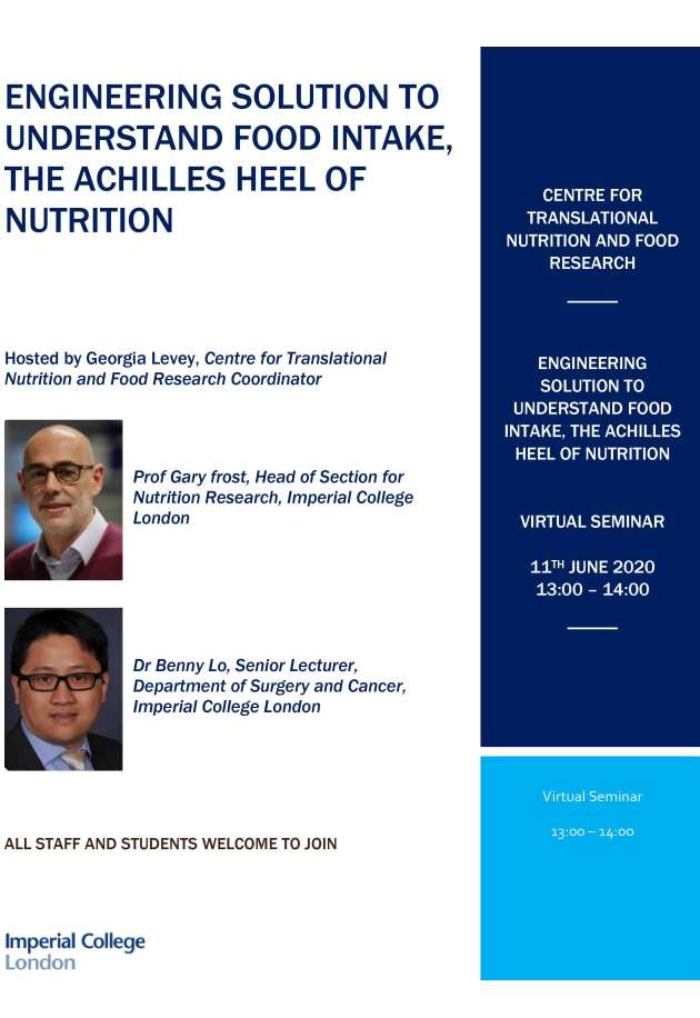 The seminar is chaired by Professor Gary Frost (Chair in Nutrition and Dietetics).
