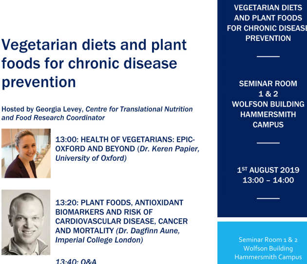 - Seminar: Vegetarian diets and plant foods for chronic disease prevention