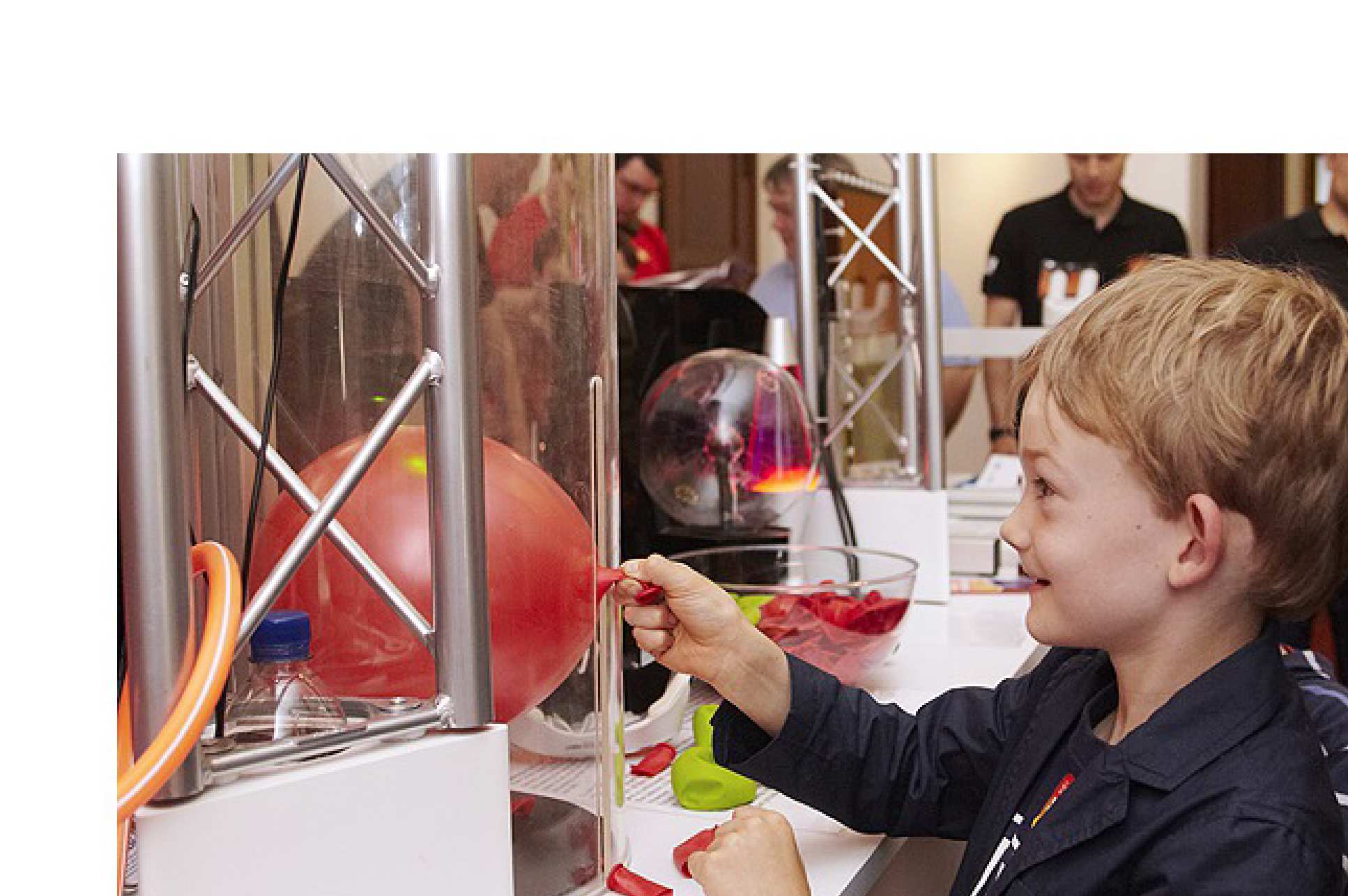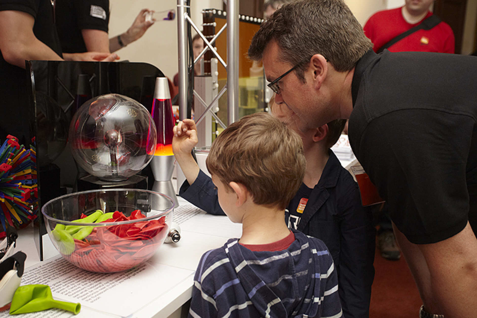| Above: A scientist explains the fourth state of matter; plasma | Above: Enthusiastic members of the team |
