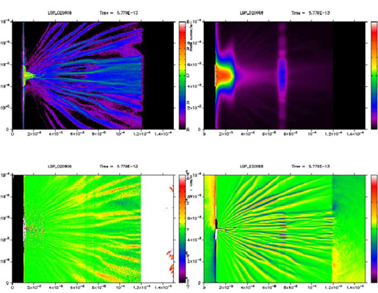 Figure 1 (above right): Magnetic field and electron number density in a laser heated plasma simulated withIMPACT.