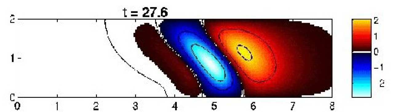 Figure 2 (above left): Vlasov-Fokker-Planck numerical modelling of magnetic field generation by non-local effects in a laser heated plasma using IMPACT (see complete animation below).