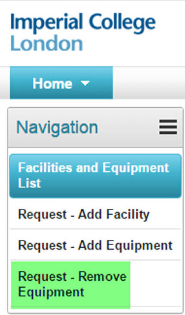 Any of the contacts listed within an equipment or facility entry in the Directory can remove their own item by logging in and selecting the 'Request - Remove Equipment' option in the top left, and selecting the appropriate equipment or facility item.