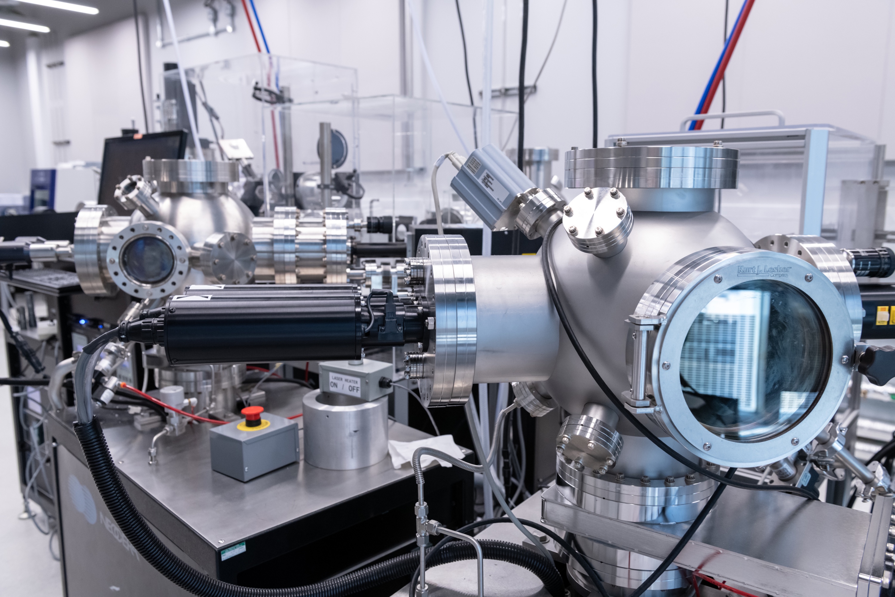 Pulsed Laser Deposition (PLD) is a physical vapour deposition technique used to produce thin films of complex materials over various background gas compositions or pressures. Our PLD system consists of four fully-automated deposition chambers, each equipped with a six-position target carrousel that allows the deposition of multilayer structures of up to six different materials.